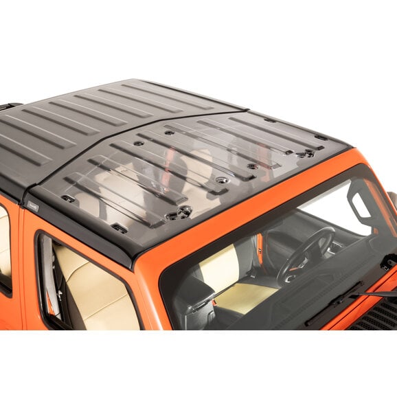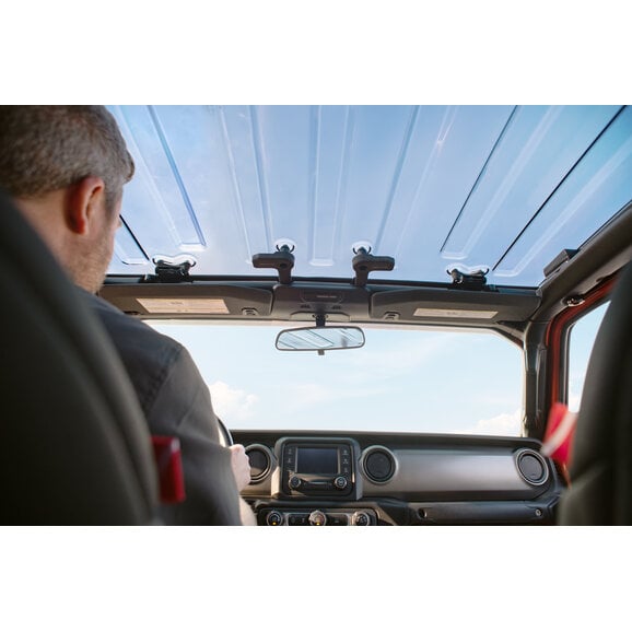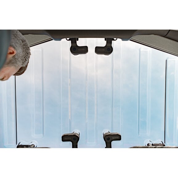 The QuadraTop SkyLite is a game-changer for Jeep Wrangler enthusiasts who crave an immersive driving experience. This innovative transparent rooftop is designed to fit Jeep Wrangler JK, JL & Gladiator JT models perfectly, offering a seamless and secure fit. Made from high-clarity, dark gray tinted polycarbonate Makrolon Tuffak® I35, the SkyLite provides complete UV protection while delivering stunning panoramic views as well as keeping your cabin cool. Whether you're navigating through cityscapes or exploring rugged terrains, the SkyLite enhances your journey by allowing you to enjoy the beauty of the sky, day or night. Its quick installation process, requiring no tools, ensures that you can easily upgrade your Jeep and hit the road in no time.