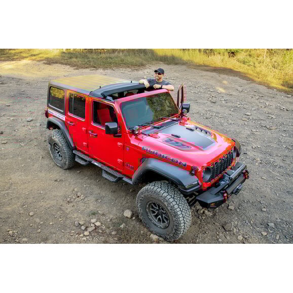 What truly sets the Skylite Roll Top apart is its superior construction and attention to detail. It boasts a solid framework including steel door surrounds, a welded rear substructure, and a steel header to provide a tight, leak-free seal in all weather conditions. A crowned center bow enhances water runoff and keeps the top taut when closed. For added comfort and versatility, an optional sunshade can be installed and used alongside the roll top, giving you UV protection when needed and the ability to roll it away when it’s not. This is the ultimate all-season solution for Jeepers who want a functional, weather-tight top without compromising on freedom.