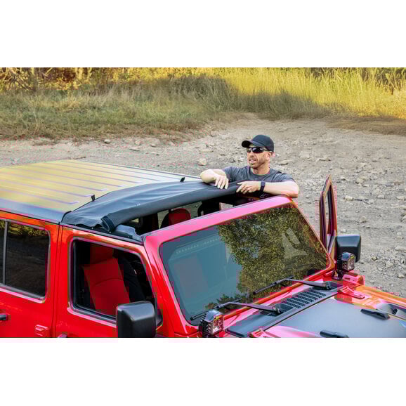 If you have a Hardtop, you need to get this Roll Top! Makes it so much easier to roll back for open air and if it rains, you just close it up! no more having to lug around your giant freedom panels. The added Sunshade is perfect for those high sun days so that you don't get blinded. Everything rolls up nice and flat so it doesn't flap. Also can be used with a roof rack unlike the other brands. Definitely a must have item for your jeep!