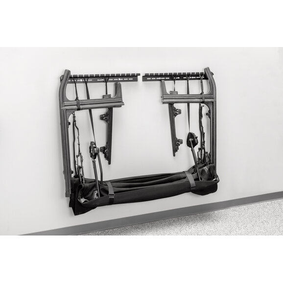 This soft top wall-mount storage rack is an absolute lifesaver. I usually just have my soft top laying on the ground prop-3d up against the wall. But now it is up and out of the way. The mount is high-quality, heavy-duty steel and will have no problems securely holding your soft top, along with all windows. Installation is straightforward, with all the necessary hardware and detailed instructions included. Even with just basic shop tools, I had it mounted in no time.