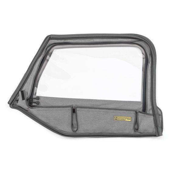 Our Replacement Door skins are the easiest way to upgrade those worn factory soft upper doors. Constructed from durable soft top fabric with double stitched hook and loop fasteners, these door skins fit snugly over your factory steel upper door frames (not included) and feature thick rubber door seals for a tight weather proof fit. Each door skin pair has clear DOT approved press polished window glass for clear visibility. Door skins come with easy to follow instructions and feature Quadratec’s one year limited warranty.