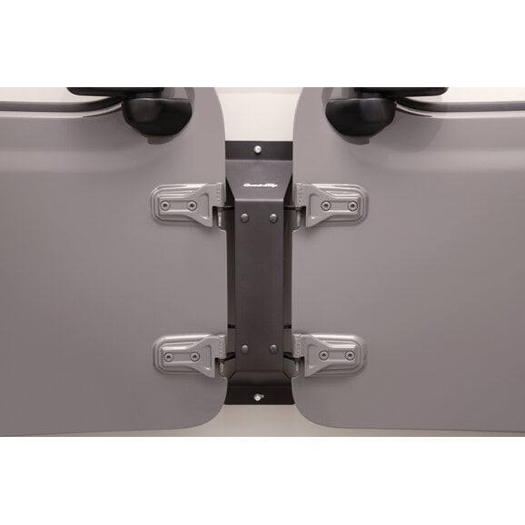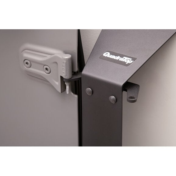 This QuadraTop Wall Mount Door Hanger Bracket is designed to fit hard doors from 1976-24 Jeep CJ7, Wrangler and Gladiator models. Specifically engineered to store doors against the wall and off the floor — eliminating potential damage to paint, hinges or glass. Utilizes 16-gauge steel and finished with a black powder coating to ensure maximum durability and corrosion resistance. Sold individually and provides fitment for two doors. Note: Wrangler Unlimited owners will need two brackets to fit all four doors.