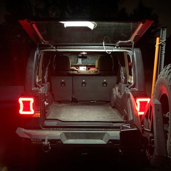Cargo Area LED Lighting Solution: This easy-to-install, 39-inch Jeep Wrangler Rear Window LED Interior Light bar mounts permanently to the lower section of the rear window to provide ample light both inside and out. The Light bar is flexible and includes all parts and wiring to install from start to finish, including a quality CNC precision metal push button switch with LED halo ring.
