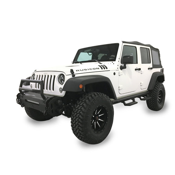 This American made front Stubby bumper is constructed from thick 3/16” steel and features a unique integrated, single-row 20W LED light bar, d-ring mounts and connects easily to the factory mounting points. Finishing off the bumper’s look is a heavy duty textured black power coat that adds durability and a striking appearance. The TrailRam’s Stubby center section has 3” welded ends and offers optional side extensions that bolt on in minutes for those who require additional fender protection. Other bumper options include a protective center bull bar and winch plate that accommodates up to a 15K pound winch. The optional TrailRam Bull Bar is manufactured from thick 3/16” steel, a heavy duty black power coat finish and bolts directly to the center section of the TrailRam front bumper with no modification needed. The Side Extensions Add style and protection to your TrailRam front bumper and install in minutes – providing superior fender and tire protection for on and off road driving. Side extensions, bull bar, and winch mount sold separately.