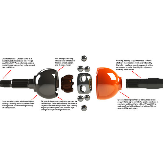 Happen to break an axle with your Dynatrac Prorock Front axle assembly? Upgrade to the RCV Ultimate Dana 44 CV Front Axle Set in your Jeep Wrangler JK Rubicon. These axle shafts are designed for ultimate dependability. The CV joints provide a strength that is unsurpassed even at extreme angles and under load. RCV is a premium axle that offers quiet operation, while offering low maintenance. Only the best for your Jeep. Sold as pairs.