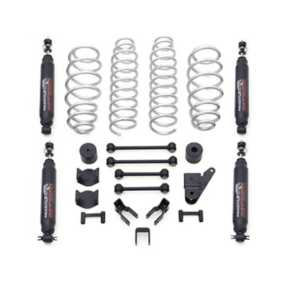 The ReadyLIFT 2.5" SST Lift Kit lifts your Jeep JK Wrangler 2.5" for a lifted and level stance suitable for installation of 35" tall off road tires. This kit allows you to confidently take your Jeep anywhere you want, on or off road, without sacraficing a quality ride or handling characteristics. The increased ground clearance provides many more off road opportunites than with a stock suspension along with the ability to install larger wheel and tires for the truly great lifted off road appearance!
