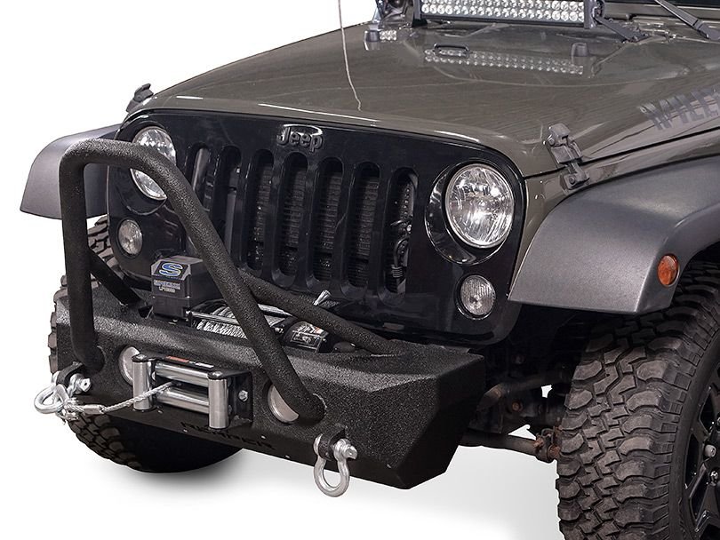 Added Features: Integrated winch plate accepts most standard winches. A bull bar or Stinger bar option is available to protect your grille. Reinforced D-ring mounts are welded on the bumper for extra recovery needs. Included Light mounting tabs allow for the installation of OE style fog lights.