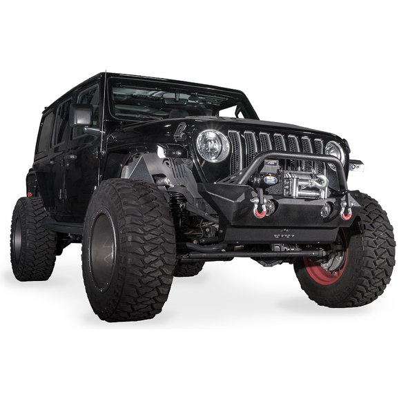 Works great with the gladiator mojave and has the brackets for the reservoir shocks as well. Fits with the factory bumper and even has a backplate that you can color match to your jeep. Excellent product.