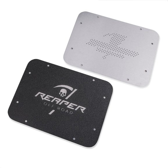 This Tailgate Cover from Reaper Off-Road for the Jeep Wrangler JK is designed to replace the factory spare tire carrier. This high-quality product is made from high-quality .060 5052 aluminum. This spare tire delete features a drilled brushed finish backing plate for ventilation. The cover has an excellent fit and a black textured finish or American Flag pattern. Reaper Off-Road proudly manufactures this product in the USA.
