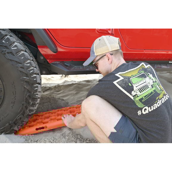 The RES-Q® 42" Recovery Boards are there when you need them most — no matter the recovery situation. These lightweight recovery boards feature an aggressive tread pattern with deep cleats designed to give your tires the ultimate grip when traction is at a minimum in bad weather. No matter if it is mud, sand, snow, or some other type of debris, these boards can be placed under the front or rear wheels, or even used to dig wheels out of a mess. Boards are constructed from heavy-duty reinforced nylon and weigh just five pounds apiece. Sold in pairs and come with a carrying case and mounting hardware. Recovery board dimensions are 41.5" x 11.5" x 2.5". Recovery boards are available in three great colors for ease of visibility; Orange, Red and Black.