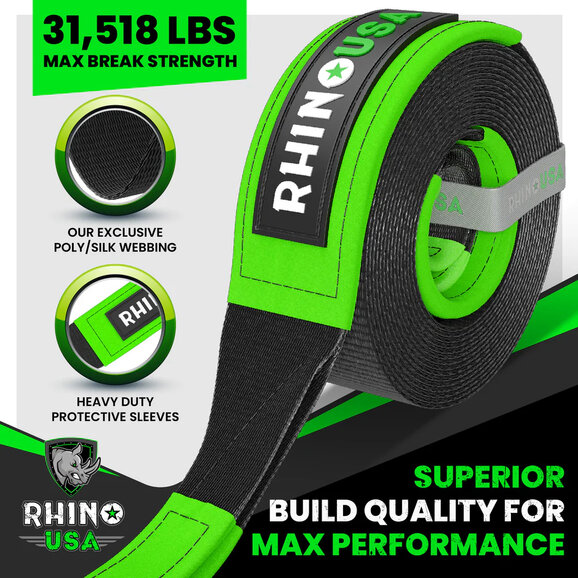 Lab-tested 31,518lb Break Strength: Rhino USA tow straps are built to endure, exceeding industry standards for safe and reliable recovery.