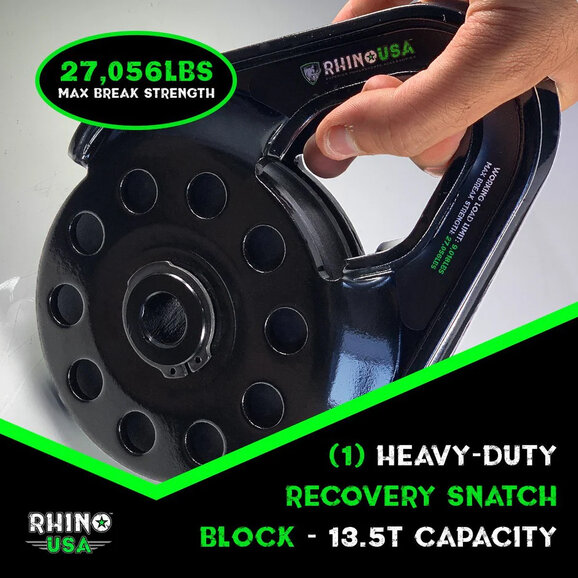 Safe and Efficient Recovery: The Rhino Snatch Block allows for safe and controlled vehicle recovery. It reduces stress on your winch and helps to prevent damage to your vehicle's frame or suspension points.