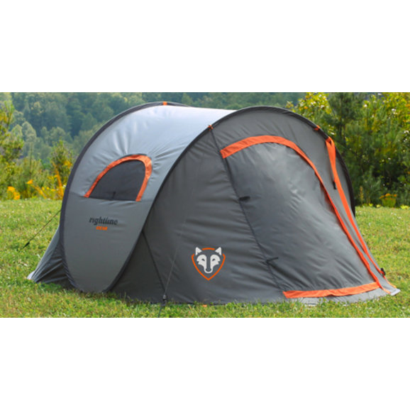 The Rightline pop up tent uses the same technology as a folding windshield shade to make a tent that sets up easily in one minute. A condensation vent ensures that moisture will not accumulate on the tent's inner walls. The tent features no-see-um mesh windows and doors with glow-in-the-dark zipper pulls, and storm covers that can be closed for weather protection and privacy.