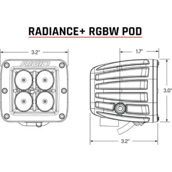 The Rigid Radiance+ Pod RGBW Pair offers powerful white LED performance combined with customizable backlighting in 8 Back Lighting Options: Red, Green, Blue, Light Blue, Purple, Amber, White Or Demo Mode, making it a perfect choice for those who want style and functionality in one package. These pods deliver impressive forward-projecting white light through Rigid’s advanced optics, while the backlit RGBW feature adds a bold visual element that can be tailored to your vehicle’s color scheme or mood. Whether you're off-roading at night or parked at a show, these lights make a statement while improving visibility.