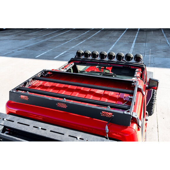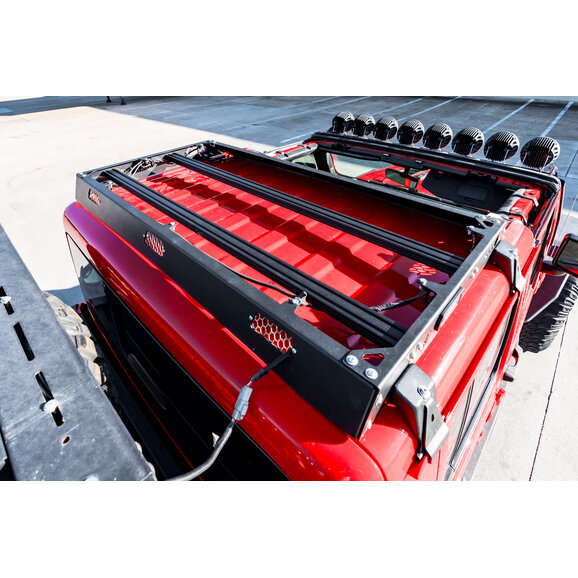 The Road Armor Modular Roof Rack for Jeep Gladiator JT is built from quality USA sourced 3/16" heavy-duty steel, CNC laser-cut, and precision brake-formed for a precise fitment every time. The finish is a 5-stage textured powder coat that provides corrosion resistance and durability. This versatile roof rack has mounting points that allow your cargo to be attached safely and securely. Slotted holes are included to allow for accessory mounts and tie-down points. This rack is an easy no-drill application so you will be loaded up with that extra needed cargo space in no time.