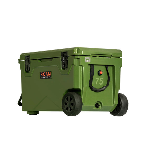 The Roam Adventure Co. 75 QT Rugged Rolling Cooler is the perfect size to take with you on trail runs, the beach, or sitting around camp. Made from high-quality LDPE materials, the Rugged Rolling Cooler features a 75 QT capacity which can hold plenty of your favorite cans of beverage or food while keeping them cold for extended periods of time. The lockable lid features a weather-tight seal that ensures the contents of the cooler stay cold. The padded grip handles make for easy carrying and loading into the Jeep! When you are done with your day, simply remove the drain plug and empty out any melted ice for easy cleanup. Backed by a limited lifetime warranty. Three color options are available to choose from.
