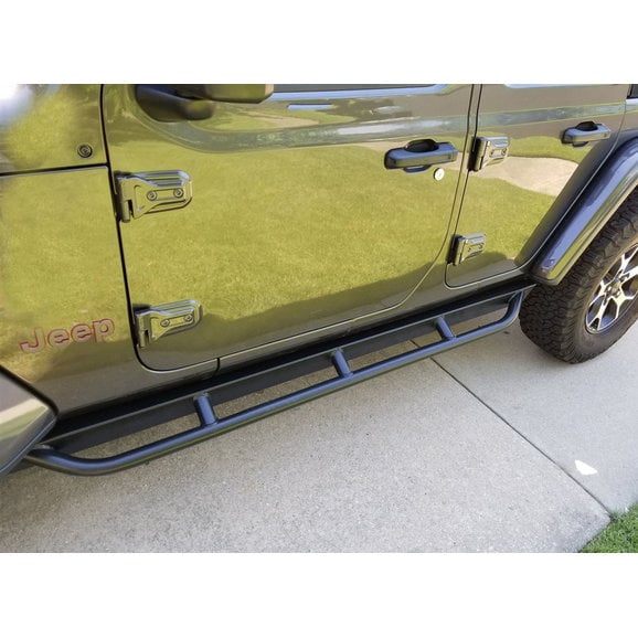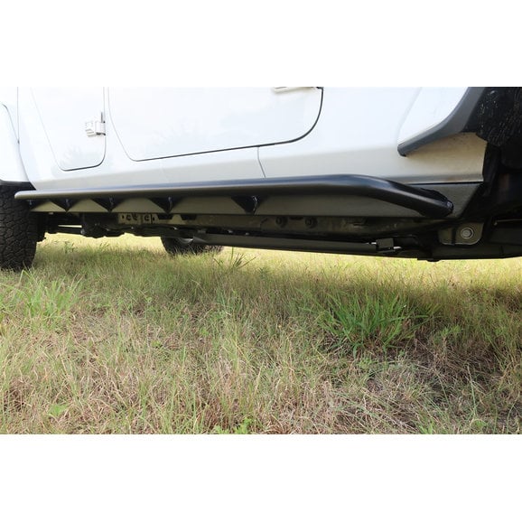 Sturdy Installation: Rock Hard tube rockers mounts to your body's pinch seam as well as mounting to your body bolts with tabs over 3 times the factory width plus through the floor of your JT's existing holes.