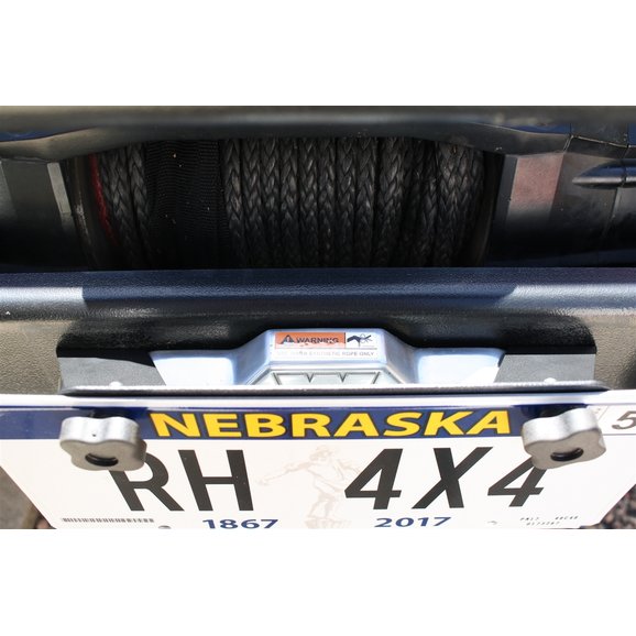 Don't zip tie your license plate to your bumper fairlead! We've landed on the moon - no more dark age methods of keeping your Jeep legal with a front license plate. Add this heavy duty license plate mount with security lanyard. The included security lanyard prevents your plate from falling off during off road adventures and keeps would be plate thieves honest. When its time to unspool your recovery hook, simply unscrew the front plate mount with a our thumb screws and let it hang safely below your bumper. The process to reinstall your plate mount is just as easy.