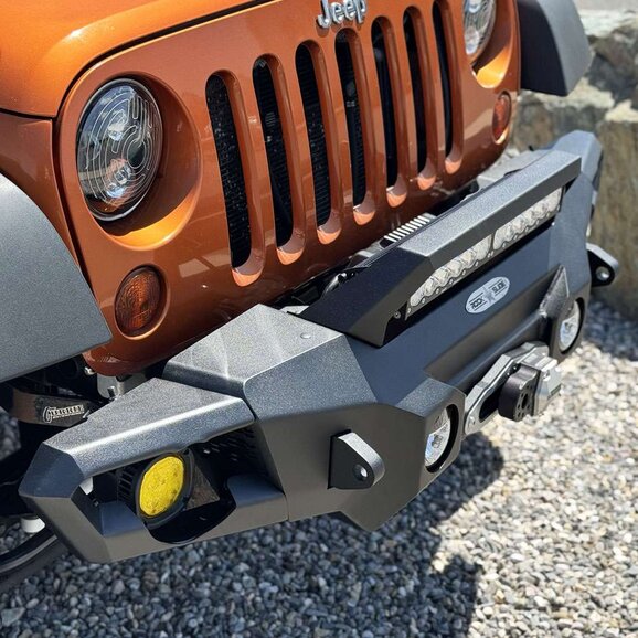 The Rock Slide Engineering Appalachian Front Bumper for the 2007–2018 Jeep Wrangler JK blends lightweight design with serious trail capability, making it a top choice for Jeep off-road enthusiasts who want performance without unnecessary bulk. Offered in Stubby and Mid Width styles, it’s easy to match your bumper to your driving style—whether you’re navigating tight rock gardens that demand maximum approach angles or tackling rough terrain where extra coverage matters. Its innovative hybrid build uses a tough aluminum outer shell to cut weight while a reinforced steel inner framework bolts directly to the JK’s frame, delivering uncompromising strength where it counts. This design improves handling by keeping weight off the nose of your Jeep while ensuring the bumper can handle hard hits on the trail. Integrated recovery shackle mounts and a winch-ready platform mean you’re prepared for self-recovery in challenging conditions, and built-in provisions for auxiliary lighting give you better visibility during nighttime adventures.