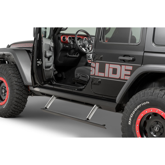 With the Rock-Slide Engineering Gen II Step Slider Skid Plate you can better protect the sides and bottom of the Step-Slider with a cut out for the step. This screws into your existing Step-Slider. Constructed in America with steel, this skid plate will fit on your 4-Door Jeep Wrangler JL.