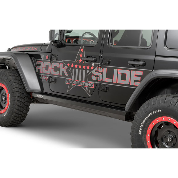 These Generation II Steps Sliders by Rock-Slide Engineering are specifically engineered for the Wrangler JL 4 Door, as a dual functioning full rock slider with a fully functional step that is actuated when the doors open and close. RSE utilizes 11-gauge steel for a super strong design that is both protective and functional and then finishes off the product with a durable black textured powder coat for years of lasting performance. These steps automatically deploy when the doors are opened, and extend a full 12" below the Jeep, and are perfect for lifted vehicles. Then, close the doors and the steps automatically retract to their original position. Should you wish to keep the steps in the retracted position, RSE also includes a rocker switch with wiring to accommodate. Installation is easy, with no drilling or modifications to the Jeep and all necessary mounting hardware is included. Sold in Pairs.