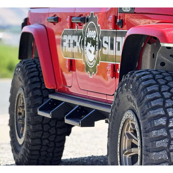 Rock Slide Engineering SL-304-SP Removable Drop Steps with 4 " Drop for 18-26 Jeep Wrangler Unlimited 4-Door with Deluxe Rock Rails