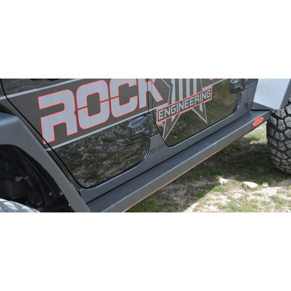 Rock-Slide Engineering manufactures this Rocker Guard Pair for the Wrangler JL 4 Door, and is designed to provide coverage and protection from trail debris or possible side impact below the doors. The rocker guards are constructed from .090 Aluminum, and powder coated black for corrosion resistance. The rocker guard set is designed to fit perfectly with the Rock-Slide Engineering Step Sliders for the Wrangler JL 4 Door vehicle. Attaches to the sheet metal with the included 1/4" nutserts.