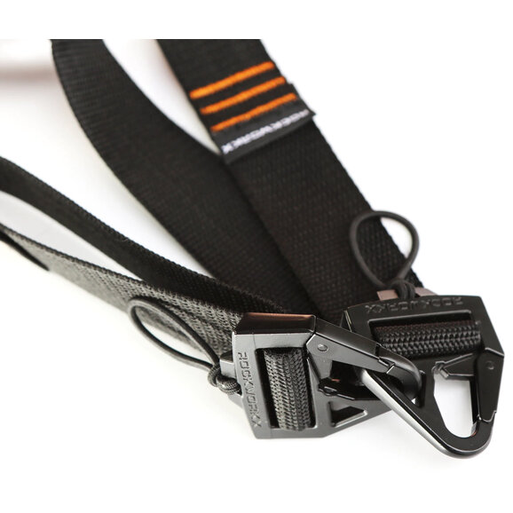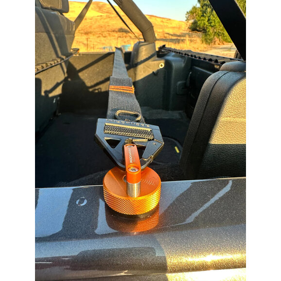 Versatile Attachment Options: Designed to connect directly to Rockworkx Thumbscrews, factory tie-down points, or child seat restraint clips, offering flexibility for various setups.