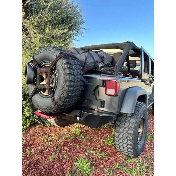 Upgrade your off-road setup with the Rockworkx Spare Tire Harness System, designed specifically for Jeep enthusiasts who demand secure, reliable spare tire storage. Engineered for durability and ease of use, this harness system offers a rugged and adjustable design that accommodates a wide range of tire sizes, making it perfect for trail rigs, overland builds, or daily drivers alike. Whether you're hitting the trails or preparing for long-distance adventures, the Rockworkx harness ensures your spare stays firmly in place—even during extreme articulation or rough terrain. Compatible with most Jeep models and easy to install, it's the ideal solution for Jeep Wrangler owners looking to streamline their rear cargo space while maintaining a clean, professional look. Pair it with the Rockworkx Mesh Bag (sold separately) to store recovery gear, tools, or essentials right alongside your spare.