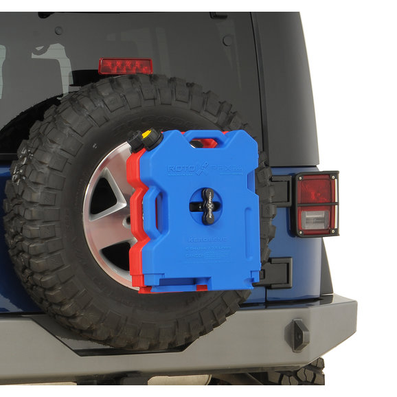 The RotopaX Spare Tire Mounting Bracket will allow you to easily mount fuel cans to the rear of your Jeep. A clever mount that fits easily behind your spare tire and extends through the center cap portion of your wheel. This flat mounting plate provides the ideal location to install your choice of Rotopax pack mounts which are sold separate. Allowing you to accommodate multiple 1, 2 ,3 and 4 gallon cans. Whether you are mounting a diesel fuel can, gas can, water can, trail storage can, or fist aid can this basic system will make installation a breeze.
