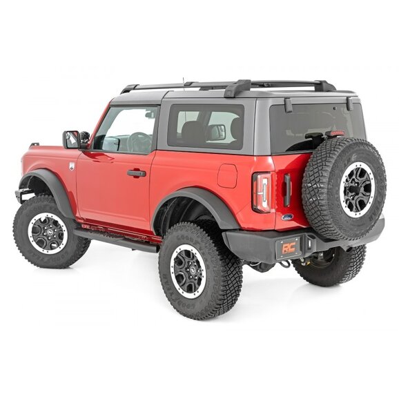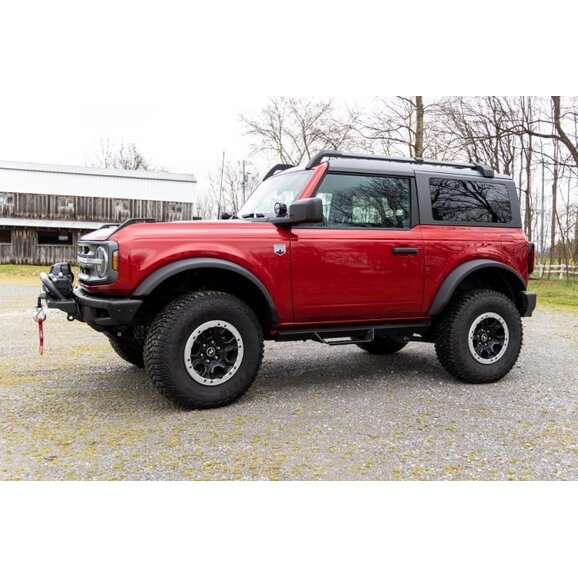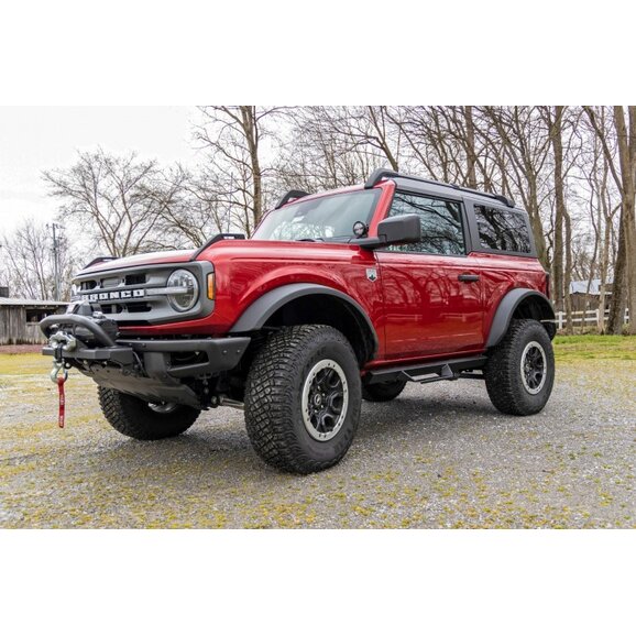 The Rough Country 2.5” Lift Kit for Broncos equipped with the Sasquatch package is designed to offer improved off-road performance and strength while also providing a clean, level appearance from the front to the rear. High-strength, lightweight upper control arms improve ball joint angle and correct suspension geometry, which means less wear and tear on the ball joint while still offering a greater range of motion. Greater ground clearance means your Bronco will be able to handle trickier trails, but these performance increases don’t come at the cost of ride quality. Designed for the road and trail alike and backed by a Limited Lifetime Replacement Warranty, this lift kit is the perfect choice to take your Bronco to the next level.