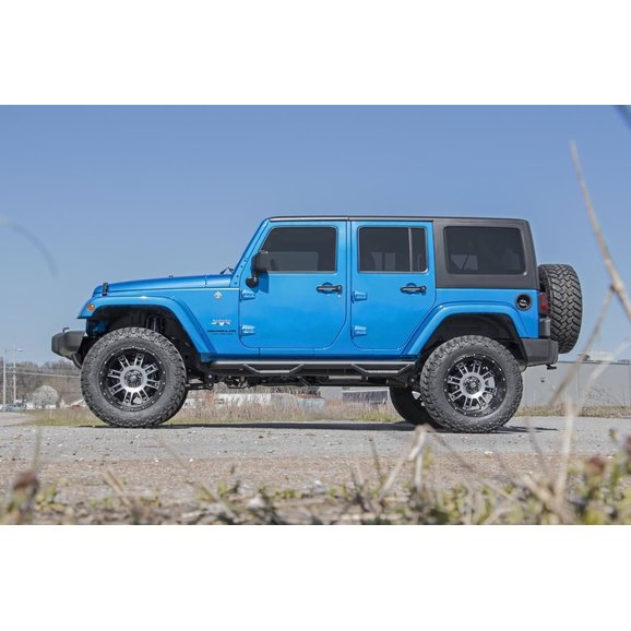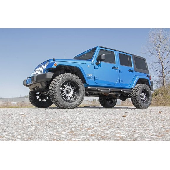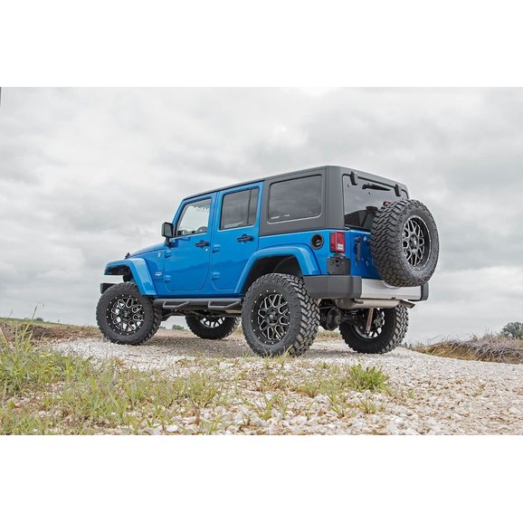 Run Larger Wheels and Tires: The Rough Country 3.5in Suspension Lift Kit with Control Arm Drop allows you to fit 35x12.50 on your four door Jeep. You will also need between 4.5” and 4.75” of backspacing, so if you are using factory wheels, then you will need 1.5” wheel spacers.