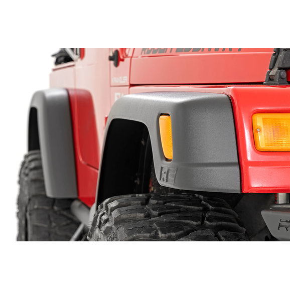 Factory Style: Because the Rough Country 5.5in Fender Flares are modeled after the factory fender flares, they accept factory side marker lights and mount to the factory bolt holes.