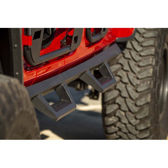 Vehicle Specific Design: The Rough Country Contoured Drop Steps are engineered to fit all JT Gladiators. They are compatible with all models, regardless of trim package or factory options. If your Jeep has factory Rubicon Rock Rails, then they will have to be removed prior to installing the Contoured Drop Steps.