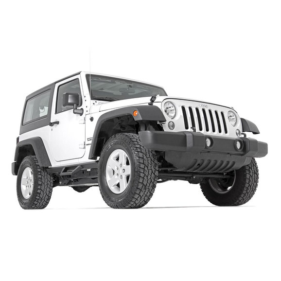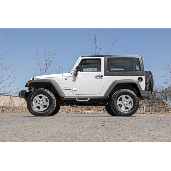 Vehicle Specific Design: The Rough Country Contoured Drop Steps are engineered to fit all JK Wranglers. They are compatible with all two door models, regardless of trim package or factory options. If your Jeep has factory Rubicon Rock Rails, then they will have to be removed prior to installing the Contoured Drop Steps.