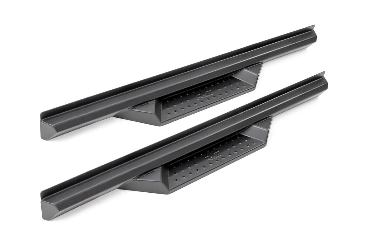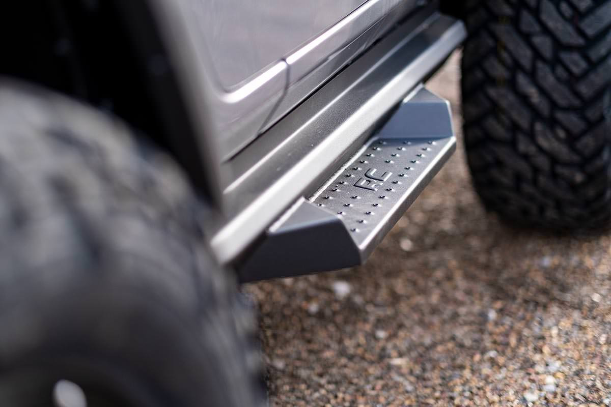 Heavy-Duty Construction: These solid 1-piece steel side steps offer superior strength and protection. For corrosion resistance, Rough Country finishes their Drop Steps in a highly durable black powder coat.
