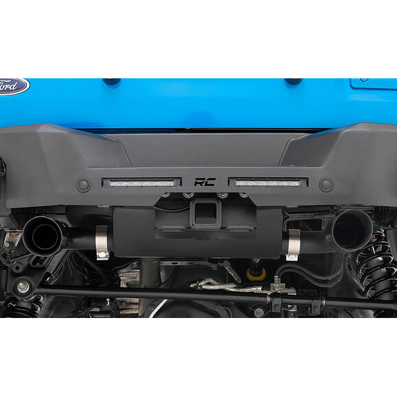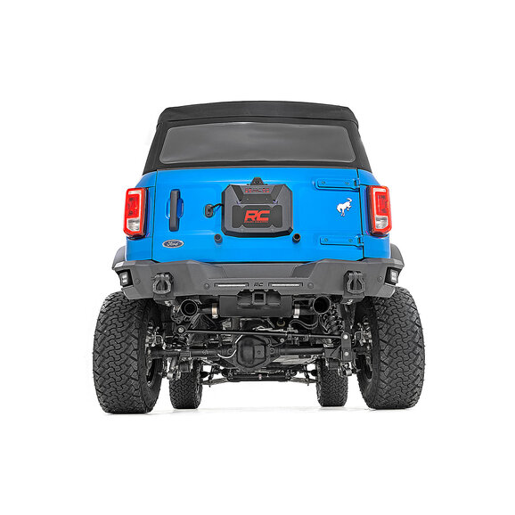 The Rough Country Dual Outlet Performance Exhaust enhances the performance and sound of your Ford Bronco. Most Bronco owners love the vehicle's classic design and off-road capabilities. But the stock exhaust system may not provide the level of power and sound you are looking for. This exhaust system is tough as nails. It's built from a 2.5" mandrel-bent stainless-steel tube, which means it can handle a beating and won't corrode over time. The exhaust features 4" adjustable tips that feature the RC logo for a sporty and sleek look on your Bronco. Plus, you can easily fine-tune the adjustable rear outlet pipe placement, whether you're rocking a stock bumper or an aftermarket one. Our dual axle-back design ensures the exhaust flows like a dream, making your Bronco perform at its best. But the best part is the deep throaty sound that growls aggressively outside yet remains muffled inside the cab.