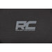 Stylish look: Rough Country Front & Rear Seat Covers come in all black. The front covers feature a gray screen printed “RC” logo.