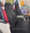 Stylish look: Rough Country Front & Rear Seat Covers come in all black. The covers feature a gray screen printed “RC” logo.