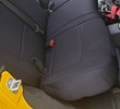 Stylish look: Rough Country Front & Rear Seat Covers come in all black. The front covers feature a gray screen printed “RC” logo.