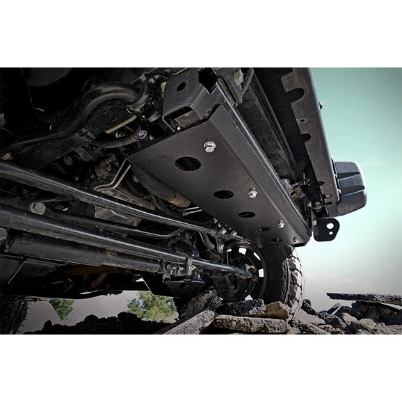 Heavy-Duty Construction: By using 3/16-in steel plate, the Rough Country Front Skid Plate will allow your Jeep to slide over rocks and off-road obstacles without damaging your front crossmember.