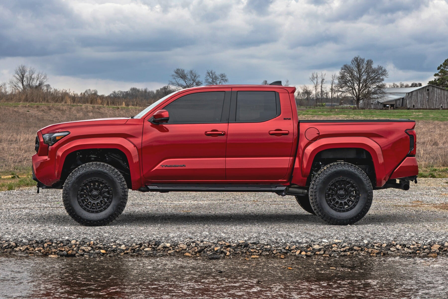Rough Country HD2 Aluminum Running Boards for Gen 4 Toyota Tacoma Double Cab are designed to improve daily usability by providing a full-length, stable stepping surface that makes getting in and out of the truck noticeably easier, especially on newer models with increased ride height. The extended cab-length design ensures that both front and rear passengers have consistent access to a solid step, while the wider platform creates a more secure footing area in a variety of conditions.