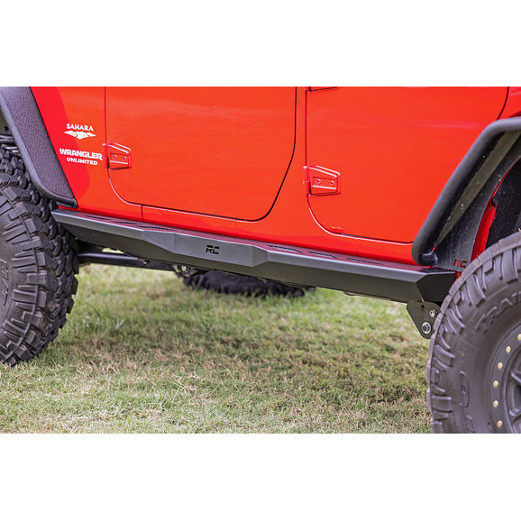 The Rough Country Heavy Duty Rock Sliders for 07-18 Jeep Wrangler JK 4-Door is the perfect way to protect your Jeep against hard rocky surfaces and road debris. These rock sliders are tough enough to take on anything you might encounter on or off the trail. The aggressive off-road design to keep your Jeep looking great no matter what. These heavy-duty sliders are constructed are constructed with 1/8” steel with a flat powder-coated finish for strength and durability. The sliders are also designed with platform to act as a step making getting in and out of your Jeep easier than ever. Rough Country's bolt-on Rock Sliders are easy to install, 100% bolt-on, and require no drilling and come with all the necessary hardware. Whether you're an off-road novice or a seasoned pro, they are a great way to keep your Jeep looking good for years to come.