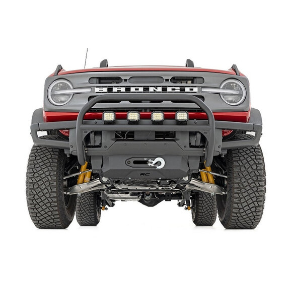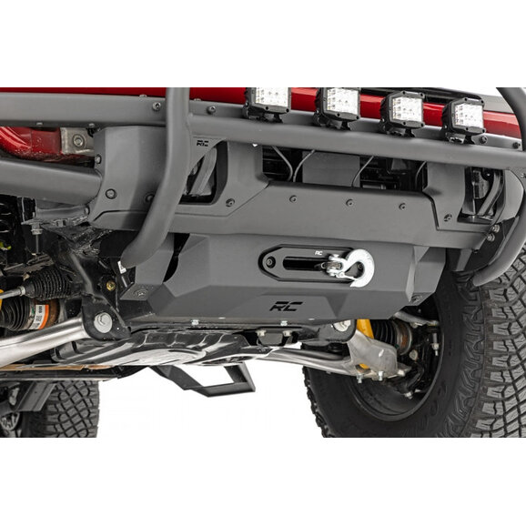 Rough Country's Hidden Winch Mount for 2.3L 4cyl Broncos provides the best of both worlds offering a stylish new approach for equipping a recovery system to your vehicle. Featuring a standard 4.5in X 10in 4 bolt Winch Mount, Rough Country's hidden winch mount can fit most standard-size winches up to 12,000 lbs and does NOT impede airflow to the intercooler. Boasting a massive 11 gauge thick powder-coated skid plate rest easy knowing that your Bronco's underbelly is well protected for any terrain.