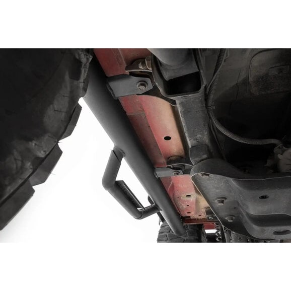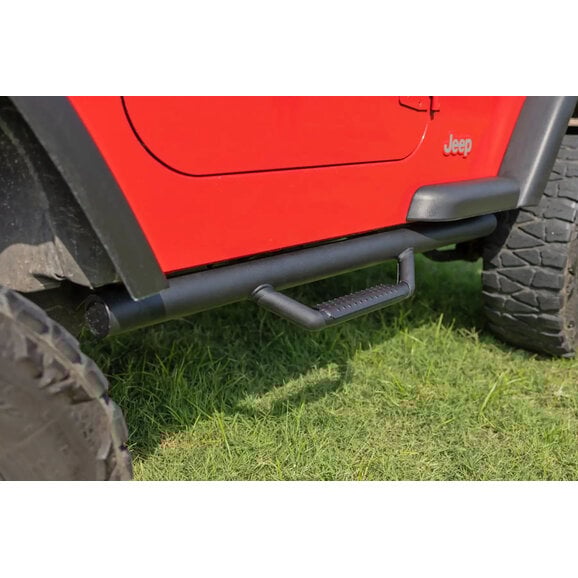 Whether your Jeep Wrangler TJ is lifted or not, side steps are a great way to make it easier to get in and out of your rig. The unrelenting style of the Rough Country Nerf Steps combine aesthetic with functionality. They are positioned high up and tight to the body for a clean look and better fit, and they are made from .084 Wall corrosion-resistant tubing that is finished with a texture black coat. The main bar extends from wheel well to wheel well for a uniform look and hides the exposed frame under the vehicle, and utilizes stone guards for added protection.