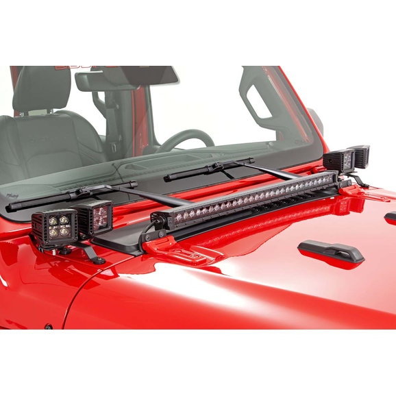 User Friendly Design: With a 100% bolt-on installation and wiring with switch included, the Rough Country Quad LED Light Pod Kit is easy to use and install. These lights will not interfere with the windshield washer sprayers. However, they will block the windshield from being folded forward.