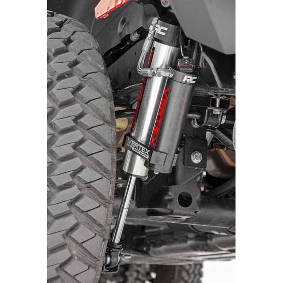 Take your Jeep Wrangler JL to the next level with Rough Country Rear Adjustable Vertex Shocks. These fully adjustable shocks feature a remote reservoir monotube design with an oversized 2.5” diameter piston. With 8-Stage adjustable damping, Vertex Shocks can adapt to any terrain at the twist of a knob. Whether you use your Jeep as a rock crawler, dune basher, mud bogger, grand tourer, or grocery getter, Vertex Shocks provide top of the line comfort and handling. The zinc plated and clear coated finish offers ultimate corrosion resistance, and can withstand over 400 hours of salt spray testing.