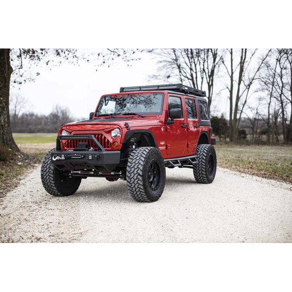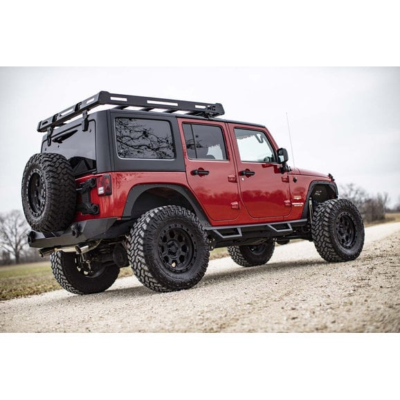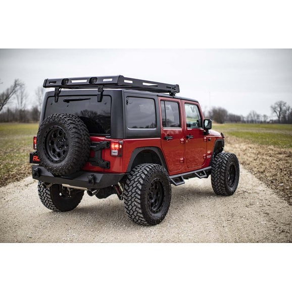 Jeeps are known for being durable vehicles that can conquer any terrain. However, they are infamous for limited cargo space. Improve your JK Wrangler’s payload with the Rough Country Roof Rack System. This 100% bolt-on roof rack features integrated light mounts and an all steel construction. For corrosion resistance and longevity, Rough Country finishes their Rack System in a tough black powder coat. The rack system is compatible with both 2 and 4 door models, and has a 250lb maximum carrying capacity.