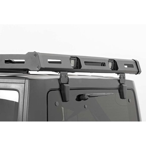 Bolt-On Installation: No cutting, drilling, or other modifications are required in order to install the Rough Country Roof Rack System. The front mounts clamp to the hardtop drip rail, and the rear bolts onto the liftgate hinge mounts. On 4-door models, this rack will not obstruct the install and removal of the Freedom Panels.