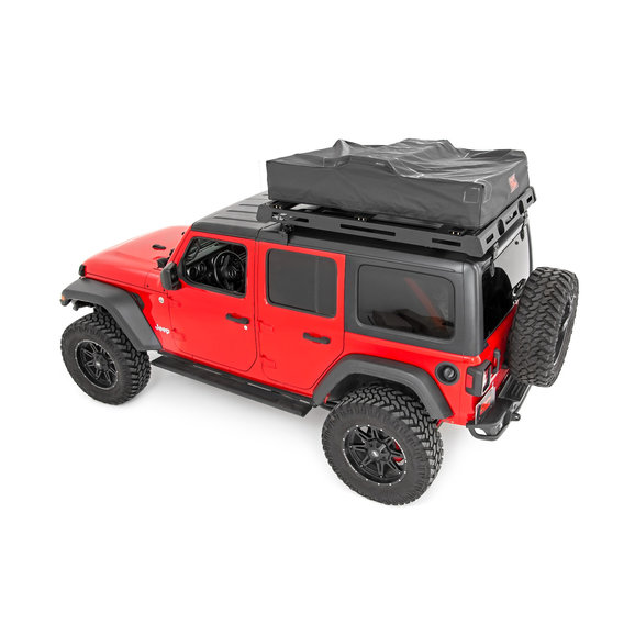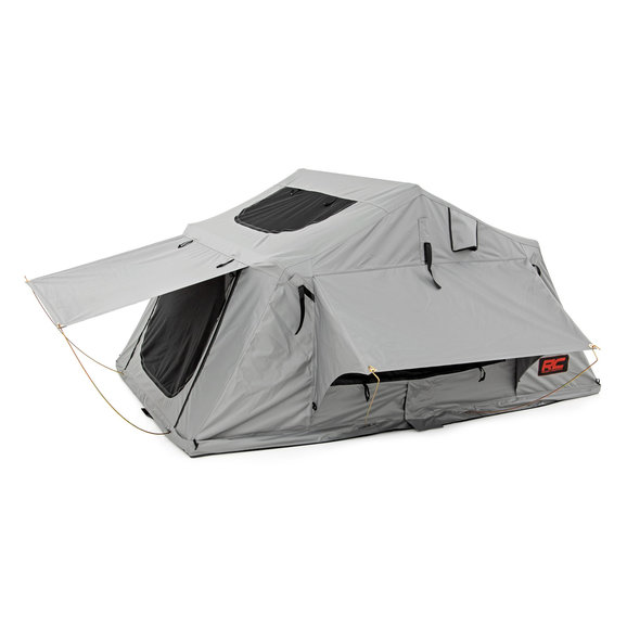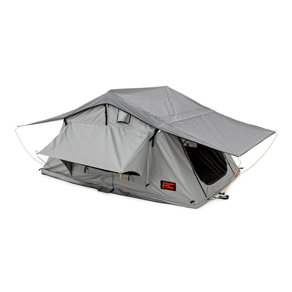 Having a tent is a must on your next overlanding adventure, but having a Roof Top Tent with 12 Volt Accessory & LED Light Kit from Rough Country on top of your Jeep can add that extra bit of comfort & tranquility when you rest after a day on the trails. This cozy tent can fit 2-3 people & comes with a queen size mattress that is made from 2" thick high density fire retardant foam. The tent is made from quality 600D Oxford Rip Stop fabric & a 420D rain fly extension. This fabric fits over a durable aluminum frame that comes with a 83" telescopic ladder. Once inside you will find mosquito screens to keep pesky bugs out & an LED light strip to light up the inside from darkness. COmes with mounting hardware to works with all Rough Country roof racks as well as most after market racks.